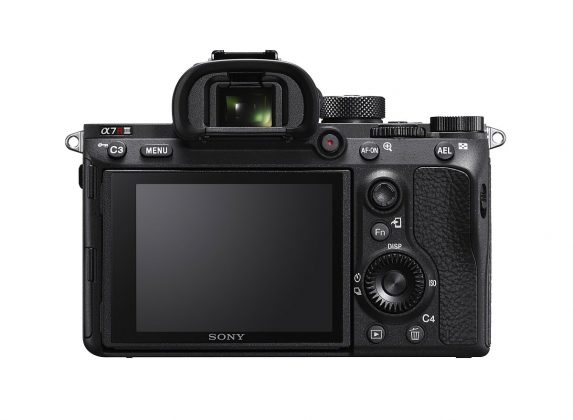 Apare în magazine în noiembrie şi arată identic cu A7R II, lansat cu 2 ani în urmă. O noutate sesizabilă din start este prezenţa unui joystick la bord, utilizat pentru navigare în meniuri. Avem şi un ecran touch folosit pentru a alege punctele de focalizare. Mai putem introduce două carduri SD în acest aparat, pentru extra stocare, dar avem şi două porturi USB, un microUSB pentru transferuri şi un USB Type-C pentru alimentare.