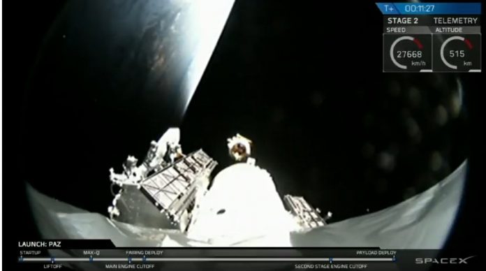 Încărcătura rachetei includea şi satelitul de imagini radar Paz al Spaniei, dar şi doi 2 sateliţi SpaceX, Microsat-2a şi -2b. Aceştia sunt sateliţi experimentali care vor testa proiectul SpaceX ce implică implementarea unei reţele Internet globale cu ajutorul unor sateliţi plasaţi în orbita joasă a Pământului. Practic SpaceX speră să reuşească să facă ceea ce Google nu a reuşit cu baloanele sale care transportau emiţătoare de semnal Internet.