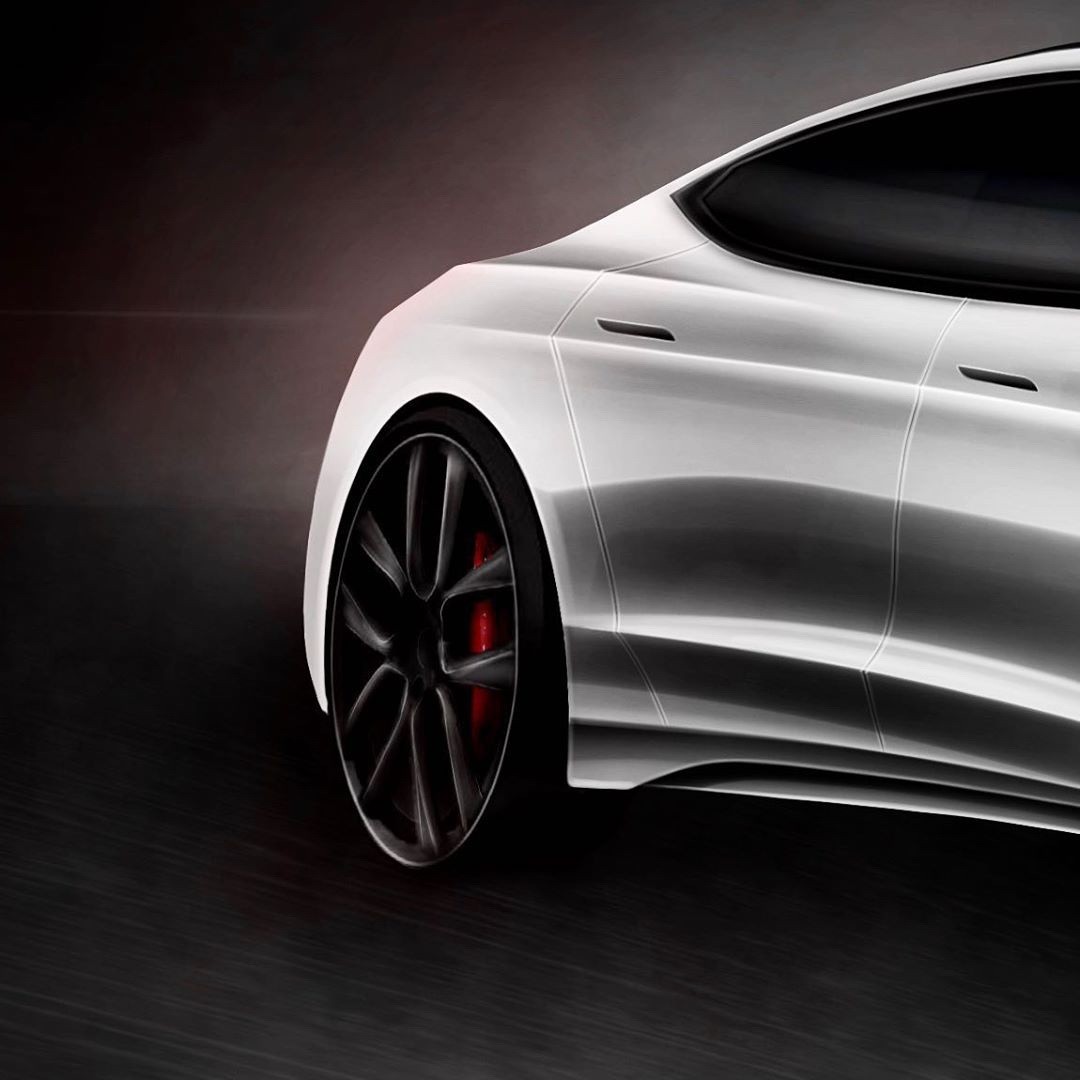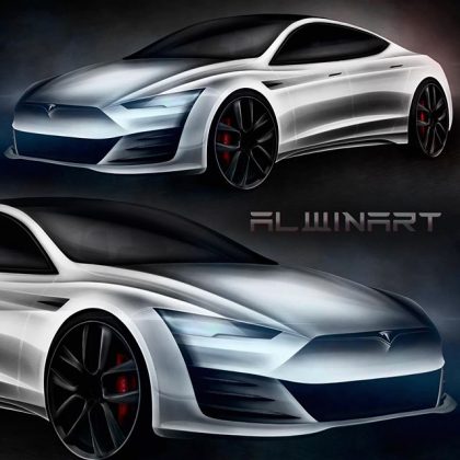 Randarea, care aduce mai mult cu o simplă manipulare foto, merge pe aceeași linie de design. Autorul a optat pentru o fantă mai mare sub capotă și o deschizătură mai pronunțată sub sigla Tesla. Vom încerca să omitem aripioarele verticale din spoilerul din față, pur și simplu, sunt puse într-un unghi ciudat.