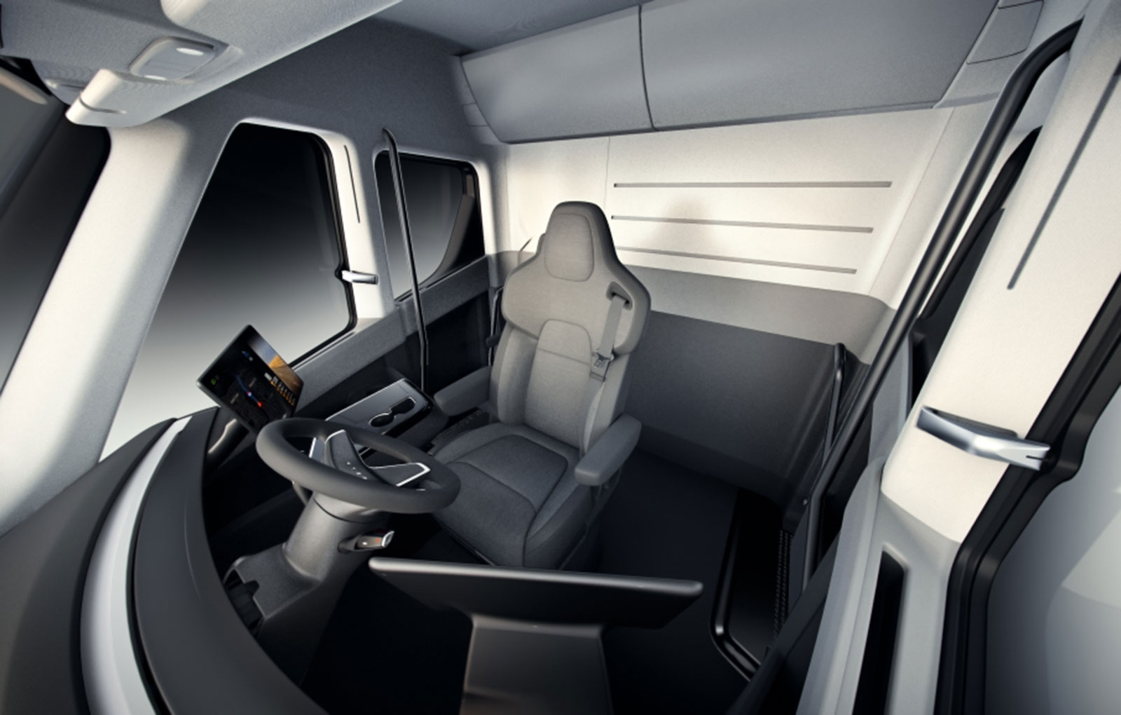 Acestea fac parte dintr-o nouă infrastructură gândită special pentru camioane. Tesla Megachargers funcţionează 24 din 24 ore şi au în spate energie solară şi Tesla PowerPack. Preţul este de 0.07 dolari per kWh. 30 de minute de încărcare la un astfel de mecanism înseamnă o autonomie de 640 de kilometri, adică 6-7 ore de condus. Cabina şoferului este spaţioasă şi minimalistă, iar interfaţa e pe baza a două touchscreen-uri de mari dimensiuni.