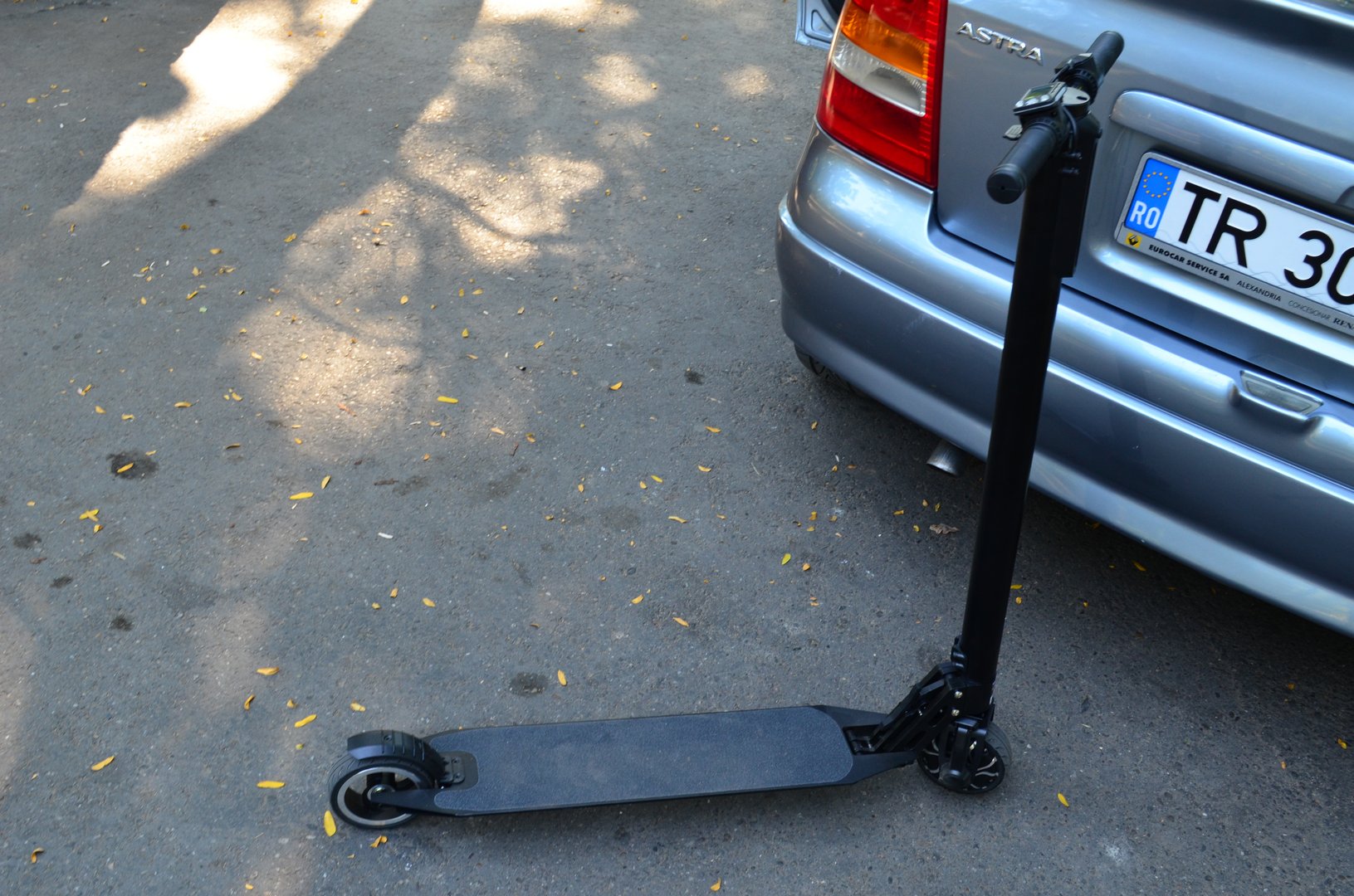 Greutatea maximă acceptată este de 90 kg și autonomia este una generoasă de aproximativ 19 kilometri. Am urcat rampe, circulat pe trotuare pietruite, asfalt și chiar și pe pământ – trotineta păstrându-și capabilitățile indiferent de terenul abordat. Rezistă și la apă ceea ce este un plus cu siguranță și un lucru care mi-a mai plăcut este acela că bateria se încărcă într-un timp rezonabil de 4 ore.