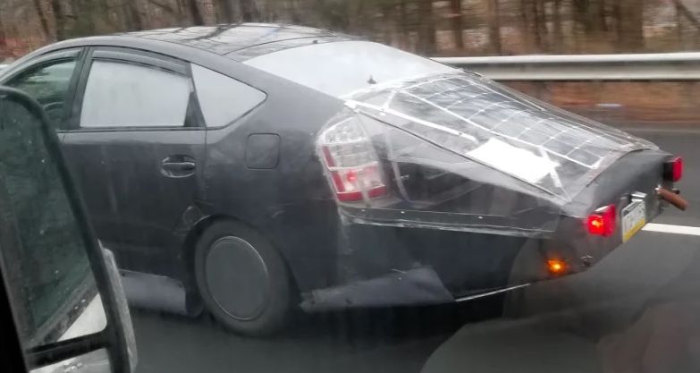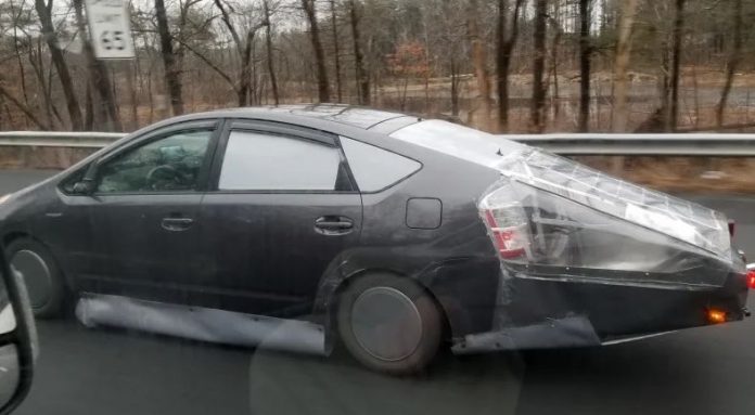 Această a doua generaţie de Prius a apărut pe străzile din Massachusetts, diferită de orice definim ca automobil în ziua de azi. Schimbările de aerodinamică sunt dramatice, iar spatele a fost transformat într-un soi de combinaţie între Lamborghini de acum multe decenii şi Delorean. Avem şi un body kit extra şi capace complet noi pentru roţi.