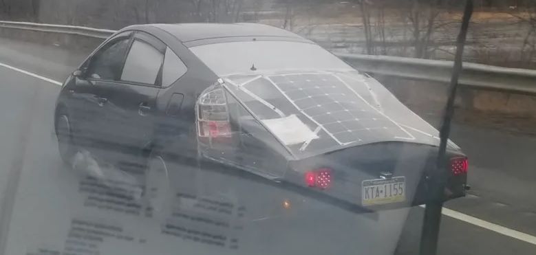 Oglinzile au fost micşorate semnificativ, iar spatele maşinii este atât de prost lipit (cu scotch sau chit sau Dumnezeu ştie ce), încât se văd şi farurile originale. Avem chiar dublura de faruri, cu încă o pereche pe noul spate. Ingredientul secret este un panou uriaş solar în zona din spate, sau ceva similar, care ar trebui să încarce bateria de la bord.