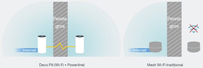 Tehnologia Powerline se bazează pe circuitul electric existent al casei şi creează conexiuni mai puternice între unităţile Deco, scăzând impactul pe care îl au pereţii groşi ai locuinţei şi alte obstacole în calea semnalului wireless. Este oferită astfel viteză mai mare de reţea şi o acoperire constantă şi uniformă. Sistemul oferă o acoperire extinsă de până la 560 de metri pătraţi, eliminând orice zonă de semnal slab, indiferent de cât de mare ai locuinţa.