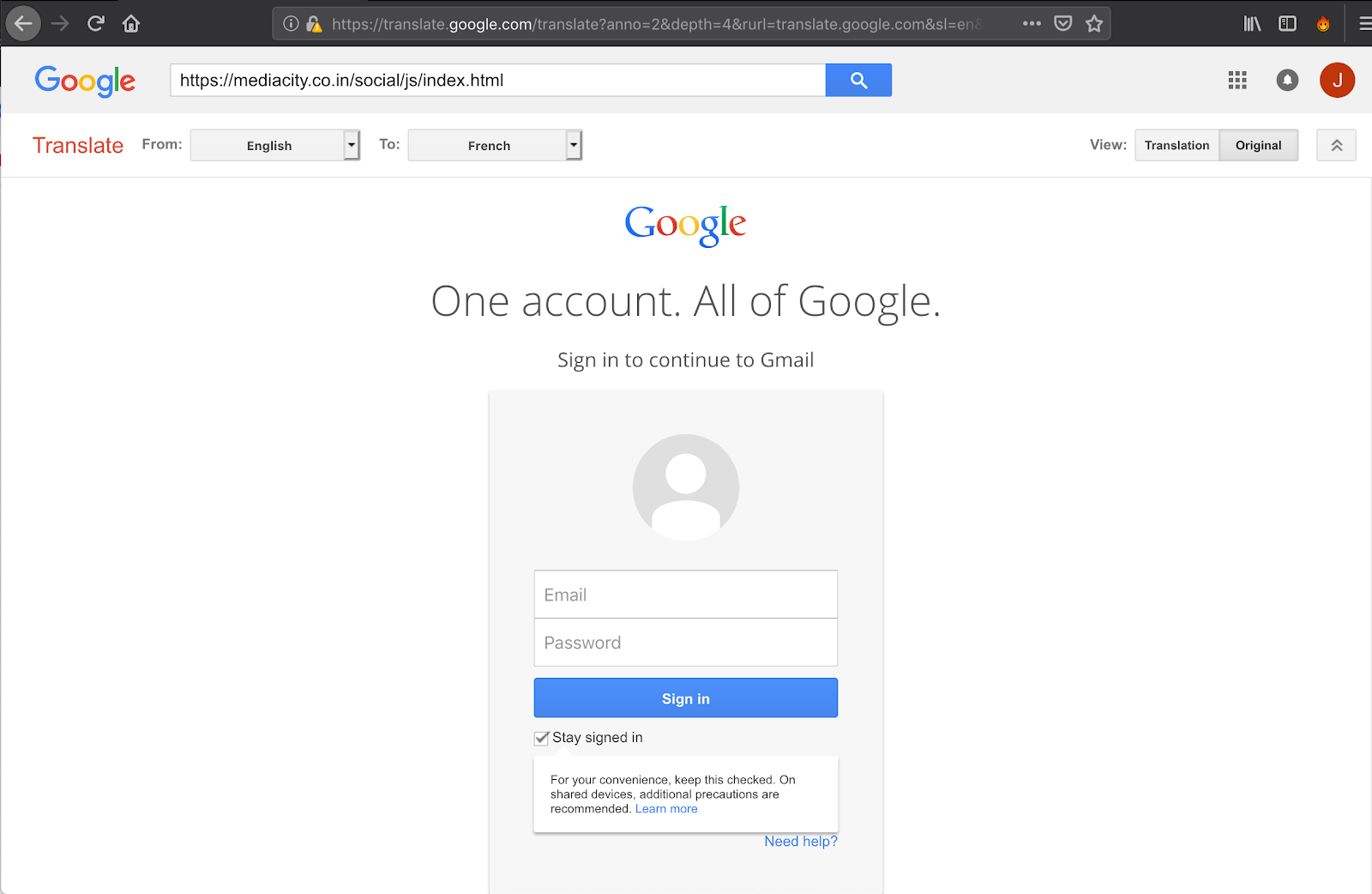 În schimb în spatele unui link pe bază de Google Translate se afla un site al unor hackeri care încercau să obţină date de login Google. Trecerea prin Google Translate s-a lăsat cu transformarea linkului aşa încât să înceapă cu „www.translate.google.com”. Şi după primul click ajungi tot pe pagina legitimă Google Translate, iar linkul maliţios e în bara de căutare Google Translate, unde ţi se cere să te loghezi.