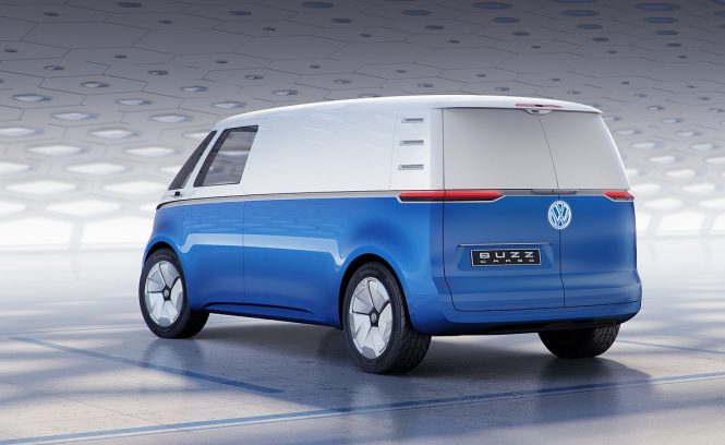 Cargo va avea motorul în spate, unul electric şi cu 201 de cai putere. Va exista o versiune cu tracţiune integrală şi cu motor pe axul frontal de asemenea. Autonomia este de 540 de kilometri, iar conceptul are un acoperiş cu panouri solare, care ar creşte autonomia cu peste 12 kilometri pe zi, ceea ce nu e rău deloc. I.D. Buzz Cargo va avea şi o priză de 230 V pentru echipamente, unelte şi altele de gen.
