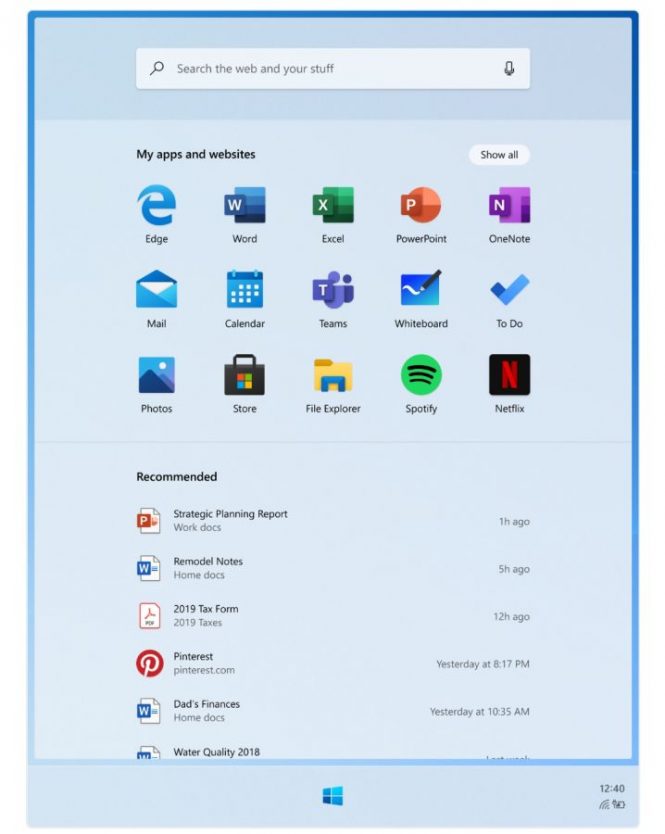 Noua scăpare arată că va fi un hibrid între o interfaţă tradiţională de desktop şi una de tabletă sau telefon mobil. Taskbar-ul va include un icon pentru aplicaţiile pornite recent, în stil iPadOS spre exemplu. Zona Quick Settings are două niveluri de detalii, lucru inspirat de bara status din Android. Se pare şi că odată ce activăm un terminal şi îl pornim din standby trecem direct la autentificare, fără să glisăm vreo fereastră cu fundal foto.