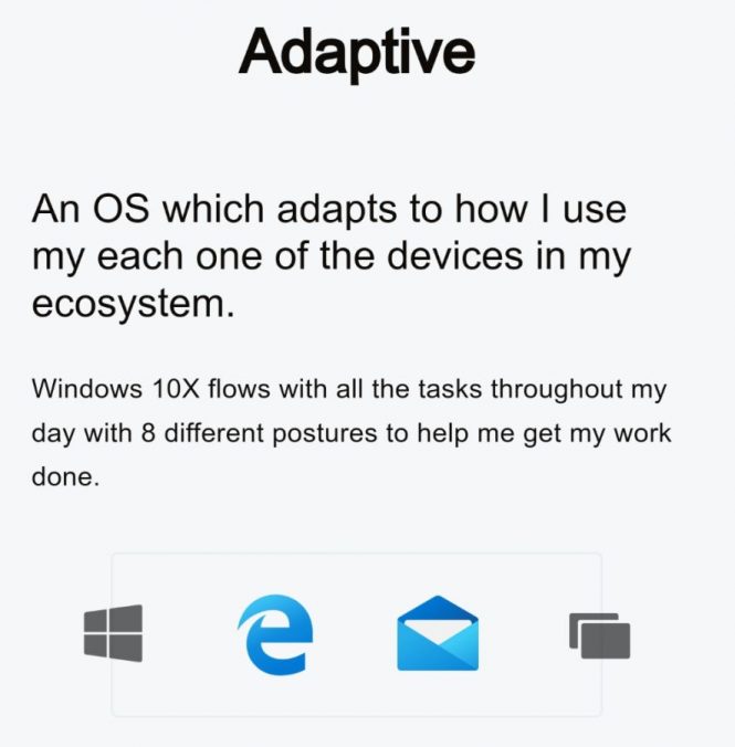 Aceleaşi documente menţionează şi că Windows 10X nu e gândit doar pentru tablete, ci şi pentru telefoane, laptopuri şi desktopuri. Putem avea un taskbar aliniat la stânga, iconuri extra pe taskbar şi alte modificări de gen (depinde de terminalul folosit). Miezul experienţei rămâne totuşi Windows, cu suport pentru aplicaţii executabile, dar şi pentru cele din Windows Store. Practic singurele modificări sunt la taskbar, meniu start şi Quick Settings plus lockscreen.