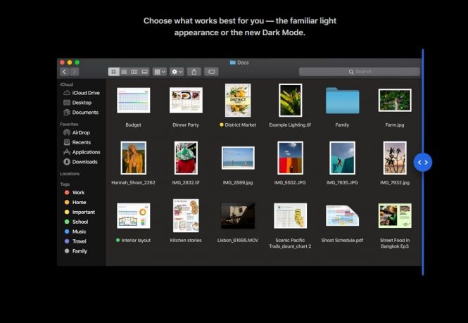 macOS Mojave îşi ia numele de la un deşert din Statele Unite, o zonă apreciată pentru drumeţii de Federighi. Noul OS aduce un „Night Mode”, pentru prima oară pe Mac. Acesta este gândit pentru prezentări şi pentru fotografi, fiind aplicat la toate aplicaţiile first party de pe Mac. O alte funcţie nouă este cea de „desktop dinamic”, care pare să fie o schimbare mai degrabă cosmetică, decât orice altceva.