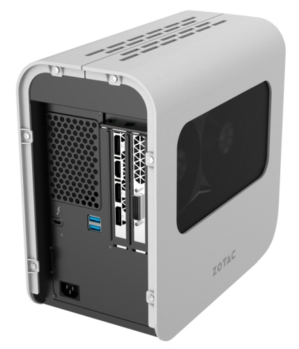 Ambele au 4 porturi USB 3.0, dintre care unul suportă şi încărcare rapidă. Zotac a inclus şi iluminare personalizabilă SPECTRA, care permite schimbarea de culoare, luminozitate sau mod de iluminare pentru placa grafică. Apropo, aceasta este vizibilă prin fereastra de sticlă a Box-ului. Din păcate nu avem şi preţ pentru aceste gadgeturi.